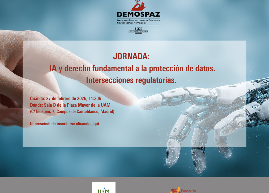 El próximo viernes 27 de febrero organizamos en el Campus de Cantoblanco una jornada sobre la inteligencia artificial y el derecho fundamental a la protección de datos, en colaboración con la Universidad Autónoma de Madrid y la Fundación Cultura de Paz.